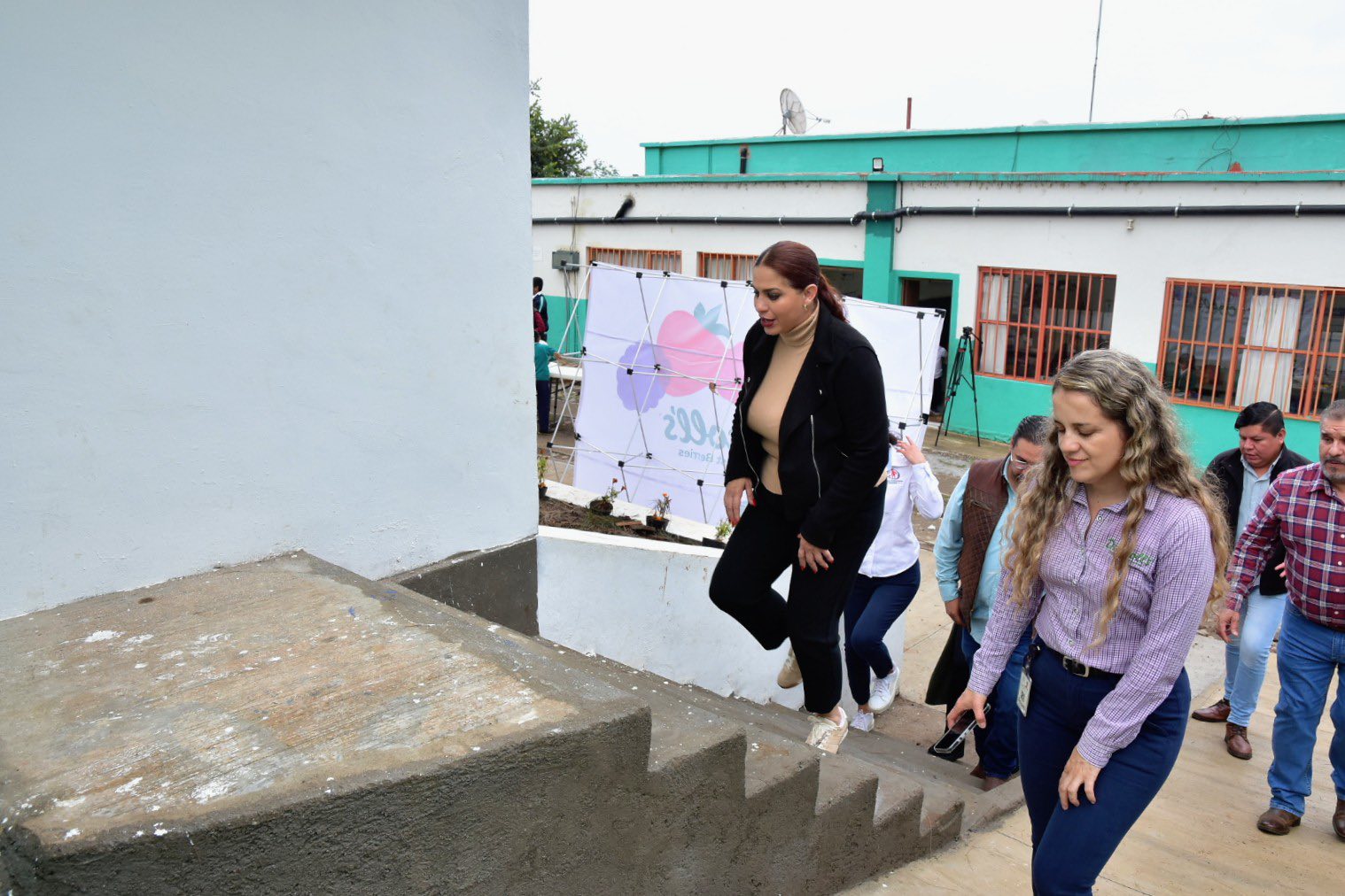 Las obras realizadas incluyen la construcción de sanitarios para niñas y niños, trabajos en los que el Gobierno Municipal colaboró con mano de obra, además de la rehabilitación de la malla ciclónica y la delimitación del plantel. Asimismo, la DRSE se sumó con la dotación de pintura; la empresa Berremix aportó recursos económicos, y madres y padres de familia participaron activamente durante el proceso.