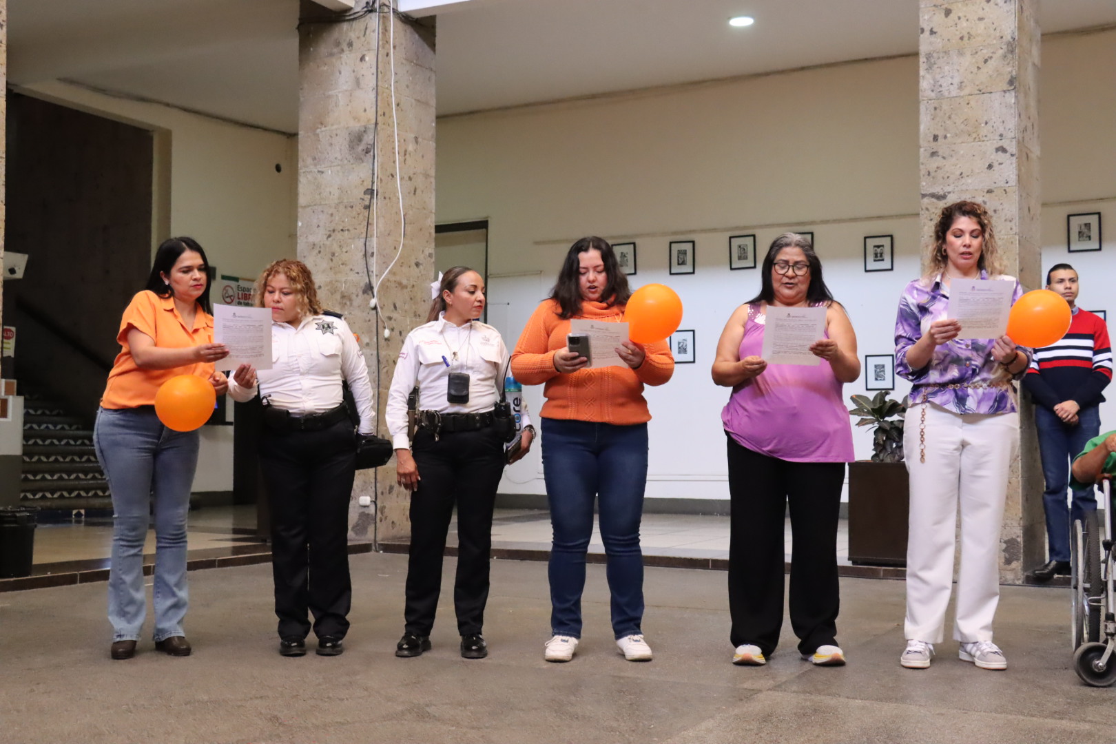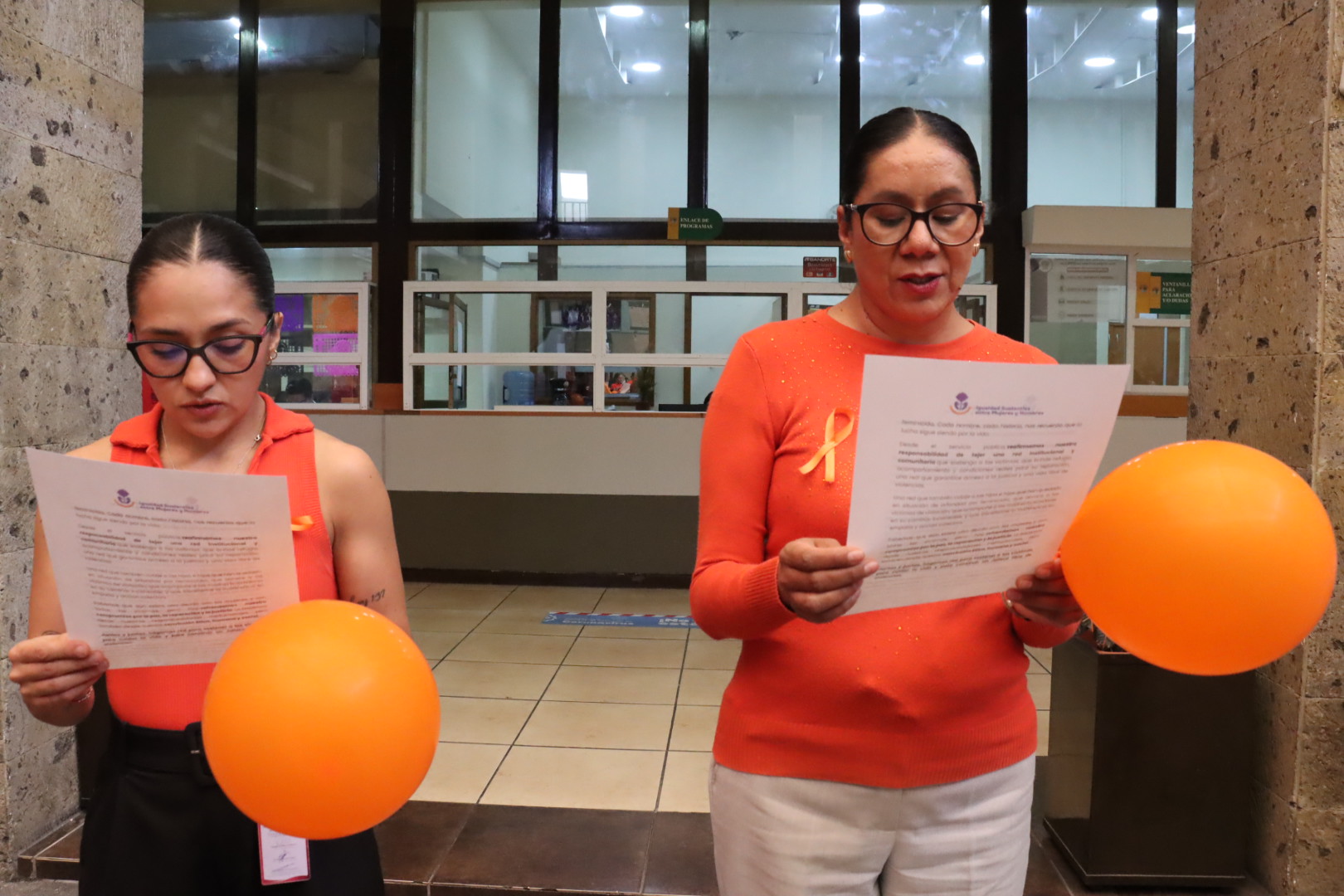 Por esta razón, y refrendando el compromiso con las mujeres del municipio, compañeras y compañeros del gobierno municipal, encabezados por la regidora Marisol Mendoza Pinto, formaron un lazo representativo a esta fecha y leyeron el pronunciamiento “Juntas y Juntos por la Eliminación de las Violencias contra las Mujeres”.