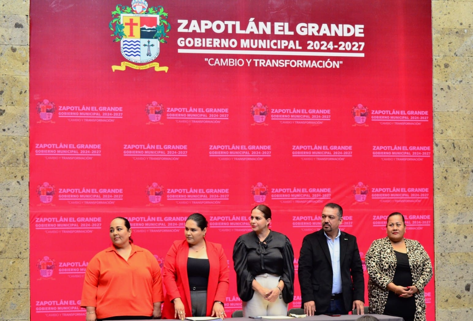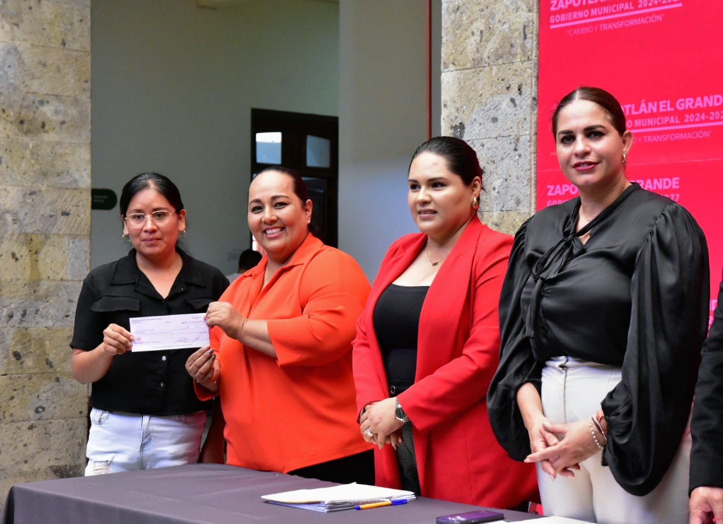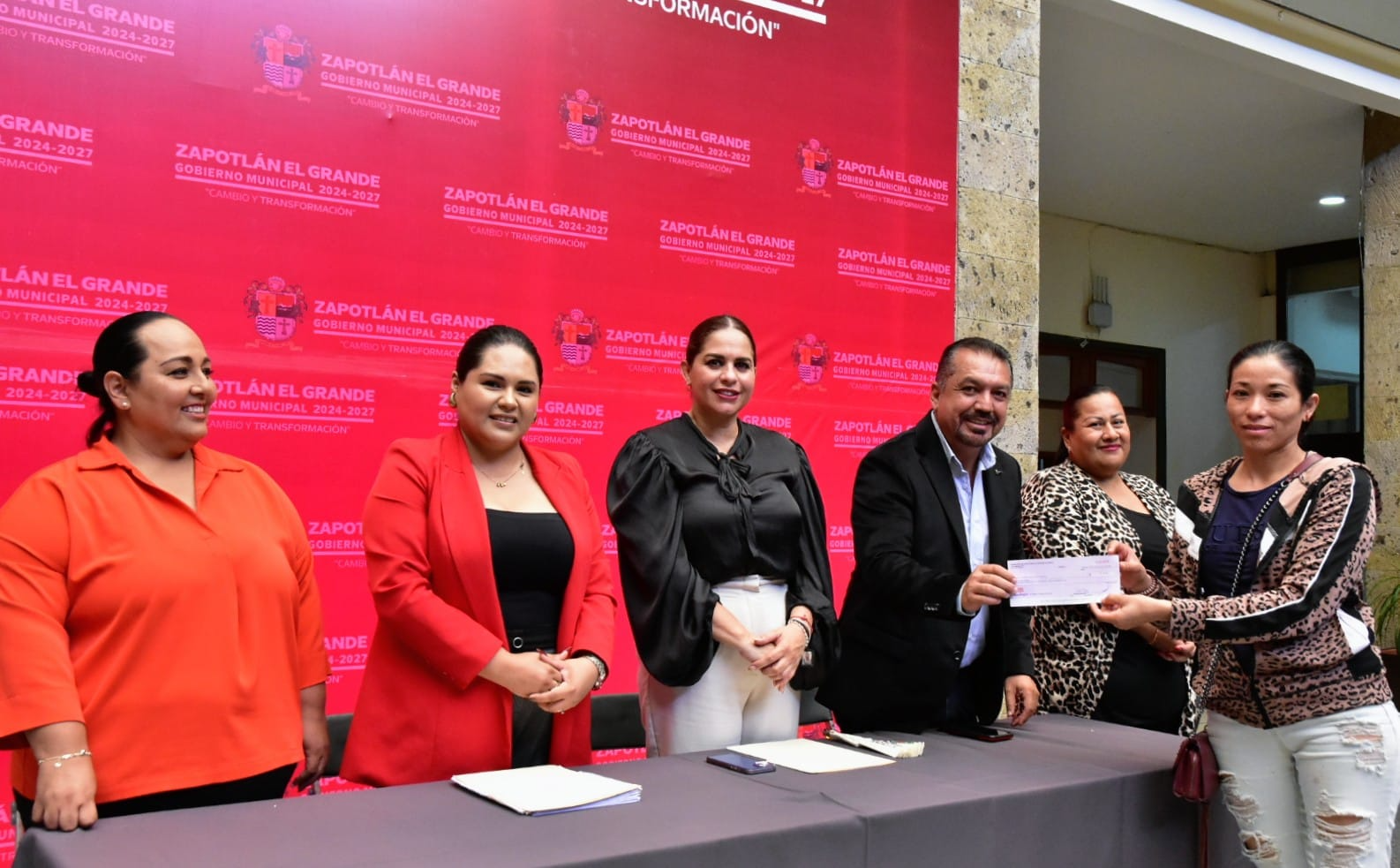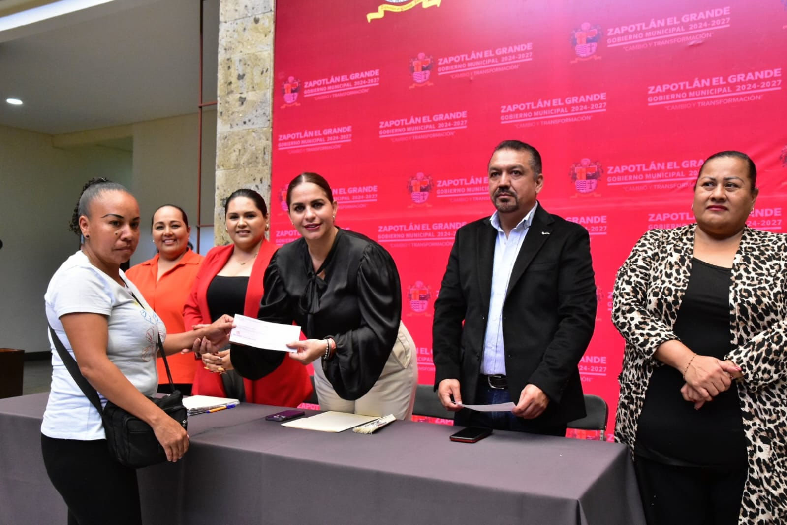 Durante la entrega se contó con la presencia de la presidenta municipal de Zapotlán el Grande, Magali Casillas Contreras, quien estuvo acompañada en el presídium por Ernesto Sánchez Sánchez, regidor del Ayuntamiento; Alma Yadira Figueroa Coronel, directora general de Construcción de Comunidad; Eva María de Jesús Barreto, directora de Igualdad Sustantiva entre Hombres y Mujeres; y Alma Inés Lucatero Cortés, jefa del departamento de la Mujer.